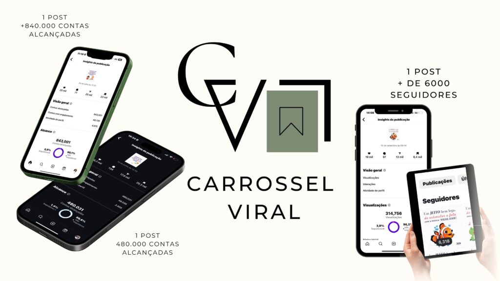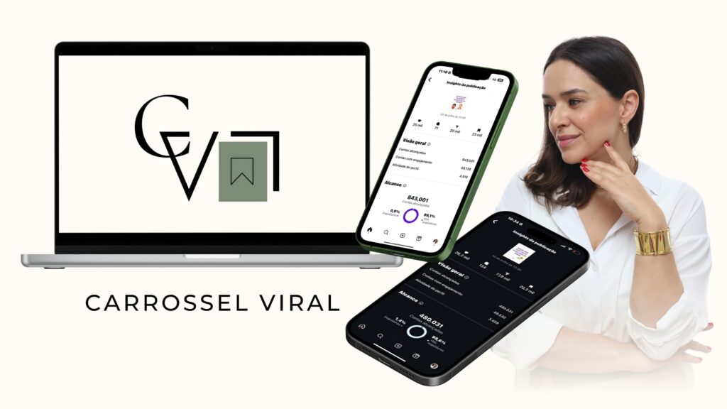 O Carrossel Viral é um tipo específico de carrossel, um conteúdo muito simples, fácil de fazer, que não exige cenário, edições trabalhosas ou mesmo que você esteja arrumada. Nele você se quer precisa aparecer.